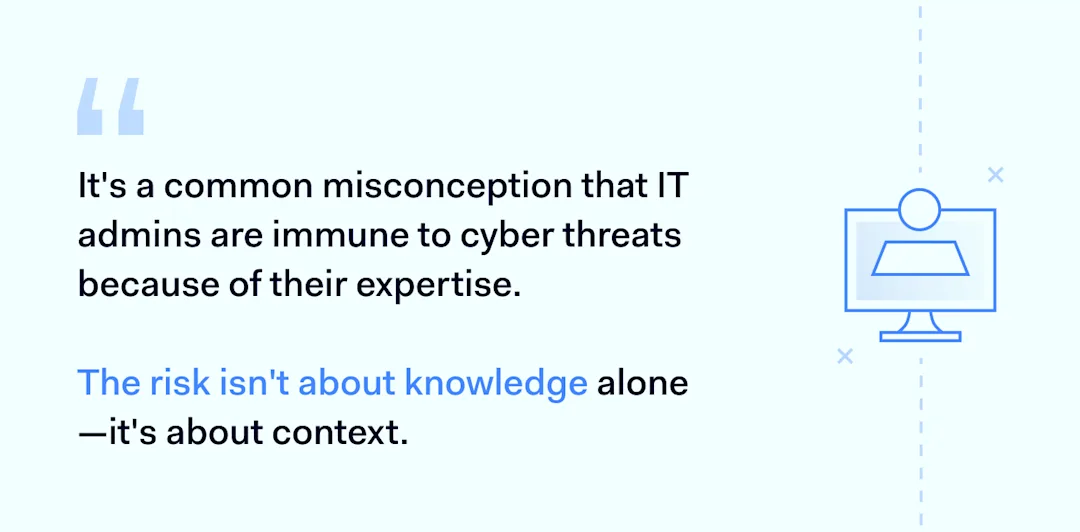 • Cyber awareness across all levels of staff is key for organizational security. Anyone, even IT admins, can become the weakest link in a cyber-attack.