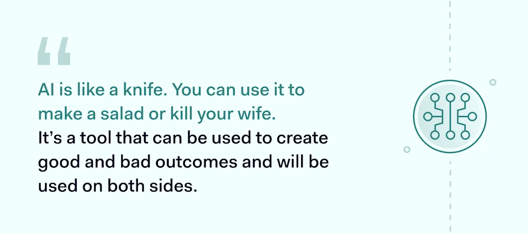 Basically, AI is like a knife. You can use it to make a salad or kill your wife. It’s a tool that can be used to create good and bad outcomes and will be used on both sides.