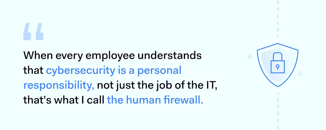 When every employee understands that cybersecurity is a personal responsibility, not just the job of the IT, that’s what I call the human firewall.