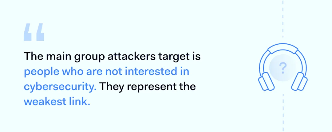 Cybersecurity must be entertaining and relatable to make people aware of threats. I always say, „Make it about people, not just about business.“. If you include “Three ways child predators can exploit your child in World of Warcraft” in your cyber-awareness training, guess what? Suddenly, mothers will care more about cybersecurity.