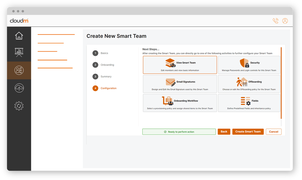 Our cloud management solution is a one-stop-shop for IT admins. Automate onboarding and offboarding and set up workflows for permissions, policies and processes for your productivity suite all from one place.