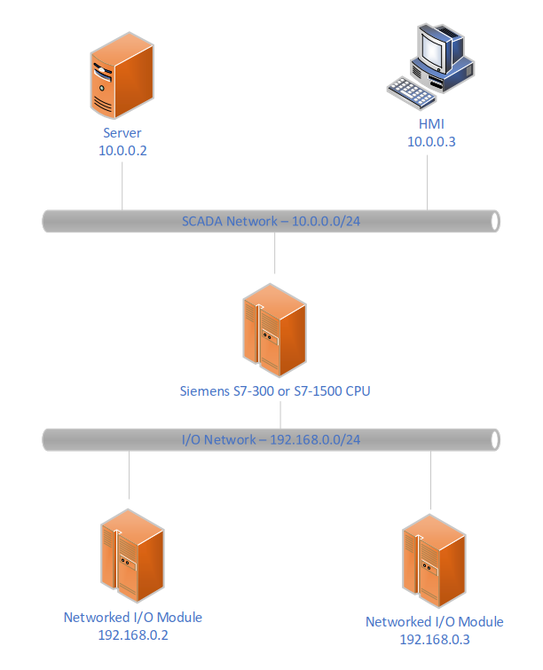 The S7-300, S7-1500 and other controllers with multiple network interfaces are sometimes used to “separate” the SCADA and I/O networks.