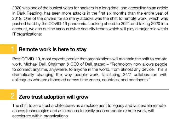 Version 2 Newsletter (February 2021 Issue)PreviousVersion 2 Newsletter (March 2021 Issue)Next4 Cybersecurity Trends to Look Forward to in 2021Posted on 2021-02-17In EDM edm