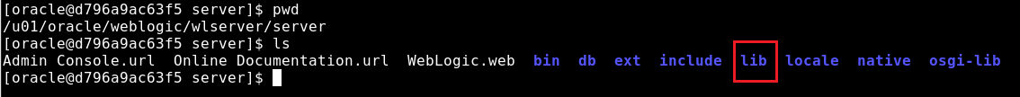 sudo docker cp container_id:/u01/oracle/weblogic/wlserver/server/lib .