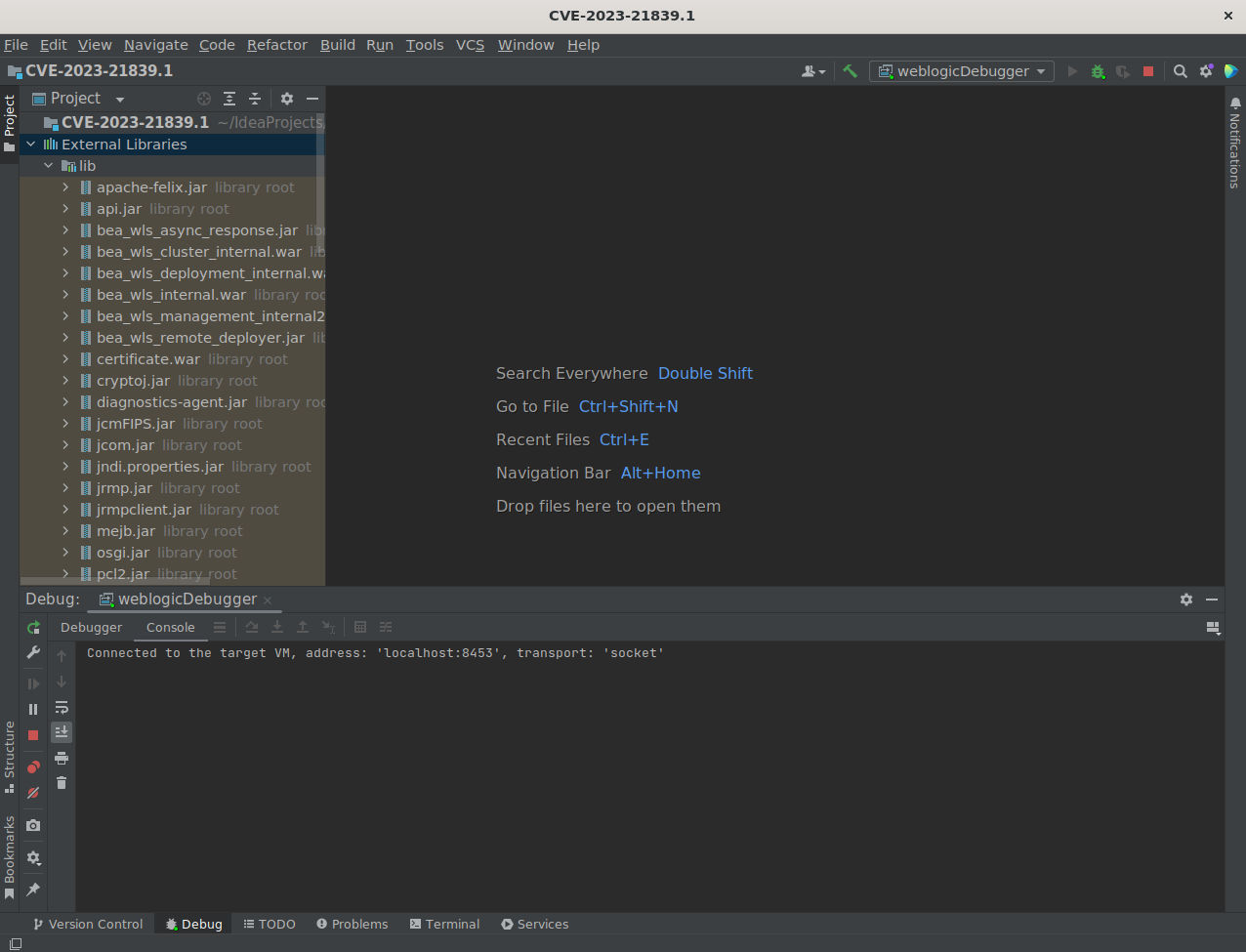 In order to debug the weblogic server we are going to copy the libs from inside the container and import them later inside our IDEA.