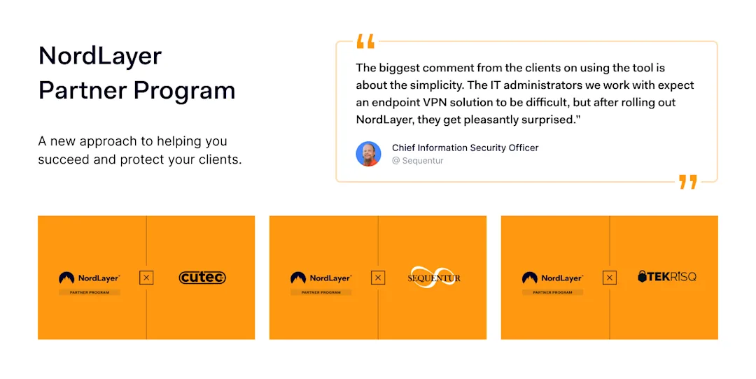 Would you like to deliver superior, quickly deployable, and user-friendly strategies to your clients? Join us as a NordLayer partner.