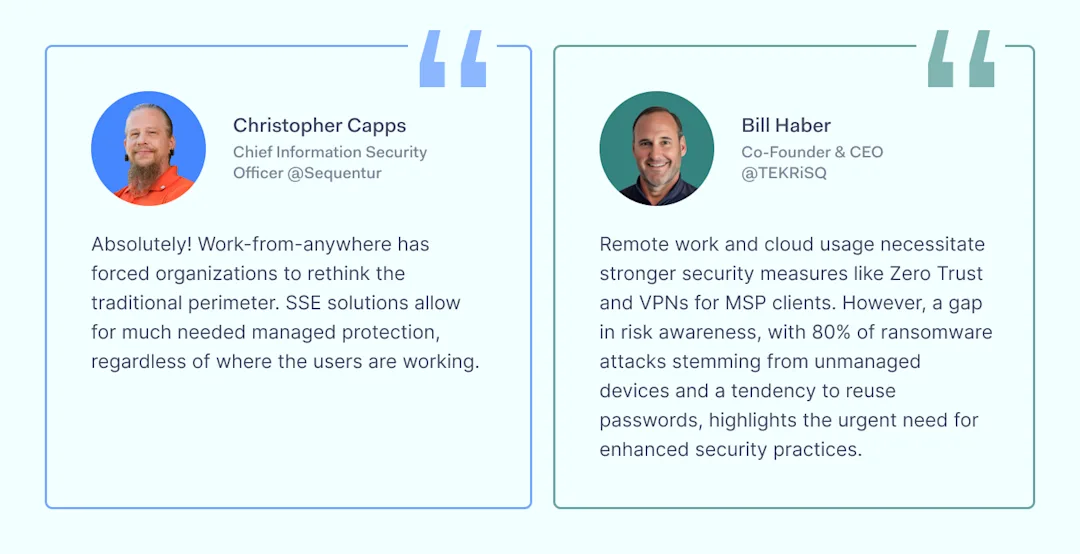 The experts’ insights highlight the growing demand for SSE solutions among MSP clients, driven by the widespread adoption of remote work and cloud services.