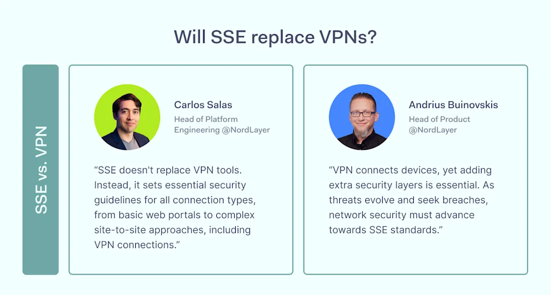 The following question is whether the SSE framework is capable of replacing Virtual Private Network (VPN) tools. While both solutions ultimately serve the same purpose of securing the network, they have quite different roles in cybersecurity.