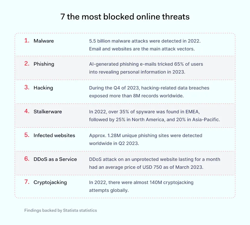 The statistics mentioned below were acquired by analyzing aggregated data gathered by NordLayer’s DNS filtering service in February of 2024. No identifiable business or user information was collected, reviewed, or otherwise involved when the research and compiled results were conducted.