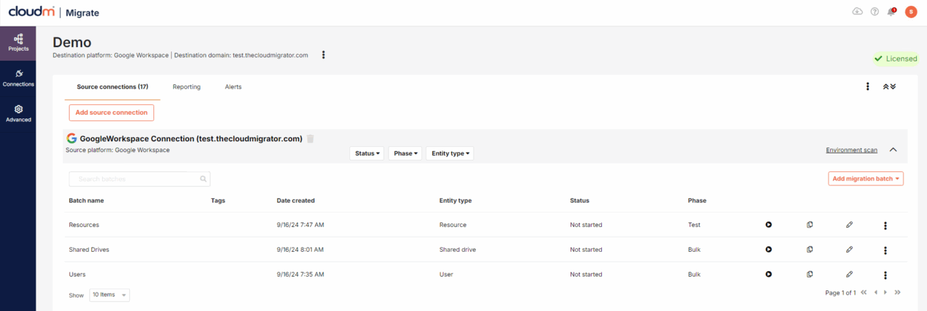 The theme of boosting efficiency runs through this major release: with Migrate 4, we move away from the concept of having configurations and child configuration. Instead, migrations are now managed as projects with batches. This saves time and removes complexity as connections to source and destination platforms can be managed centrally, enabling you to use them across multiple projects, reducing the need for manual intervention and duplication.