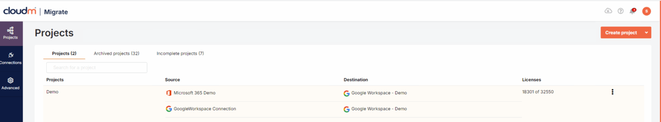 With Migrate 4, it is possible to add multiple source platforms to a project. This is a more holistic approach to migrations, making it easier and quicker to consolidate several source platforms into one productivity suite such as Google Workspace or Microsoft 365.