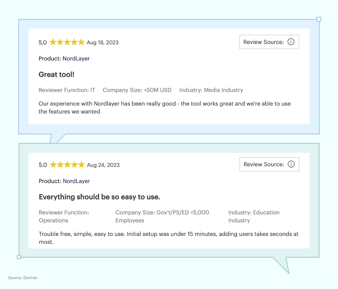 Disclaimer: This article is based entirely on third-party reviews and open-source online information accessed between April 15 and 22, 2024. NordLayer is not responsible for data accuracy, as competitor information is subject to change. The competitor information was gathered through a combination of manual research and data extraction. Data points include feature comparisons and product analysis.
