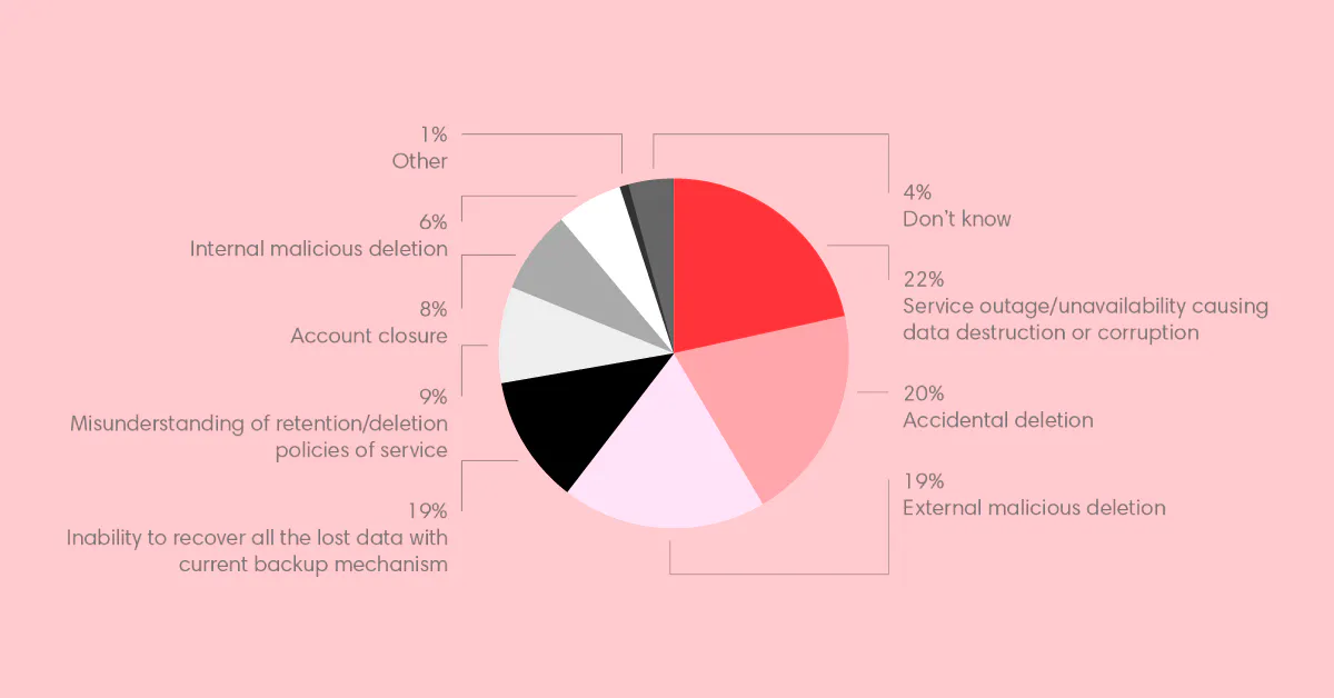 In fact, according to ESG Research, the most common reasons for data loss are service outages and accidental deletion, as seen here: