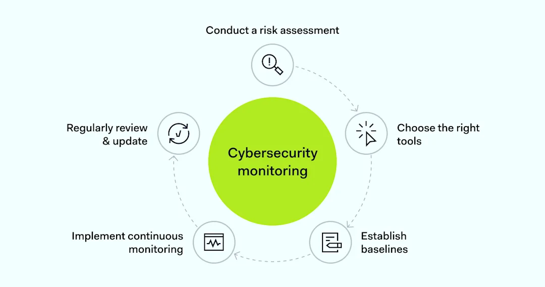 Implementing an effective cybersecurity monitoring strategy involves several steps, including: