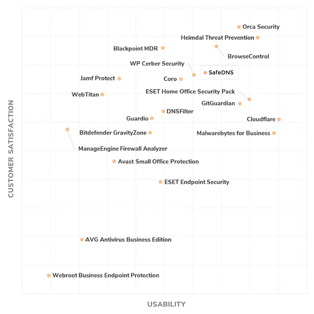 SafeDNS has been featured as a top-rated product in Software Advice’s FrontRunner Report 2022 for Cybersecurity Software category. Here’s our placement in the Grid report: