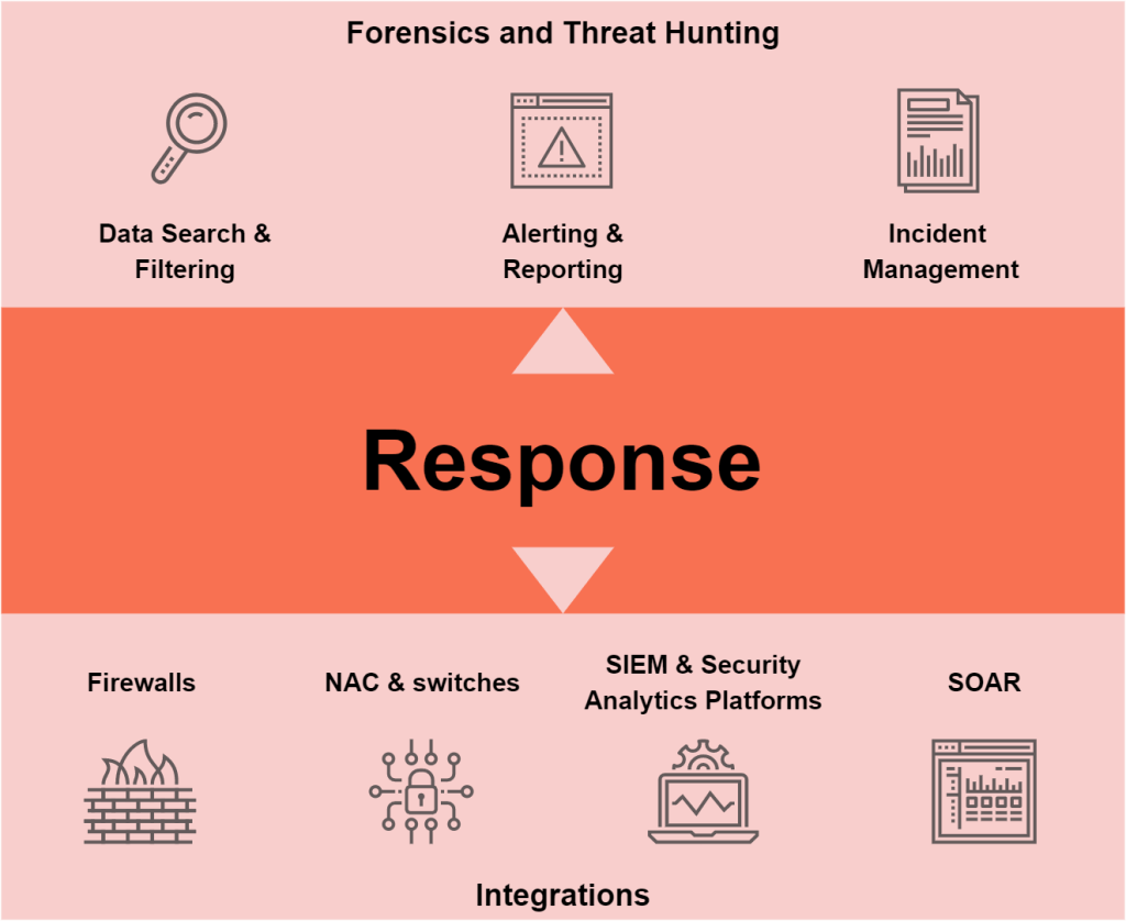 Mendel integrates with the security tools that are already in your network, like firewalls, access control systems, and other active security tools, so you can respond to attacks, conduct investigations, manage all incidents, and block any malicious communications from a single interface.