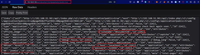 Here we can see the leaked information, and all the config data of the database.