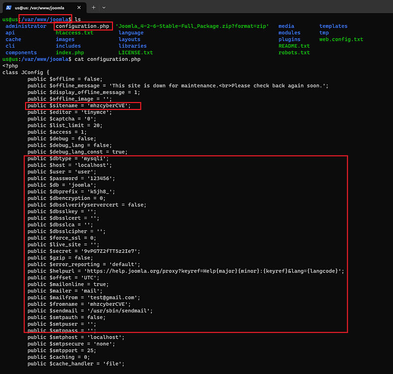 Now in configuration.php we can see all of it.
