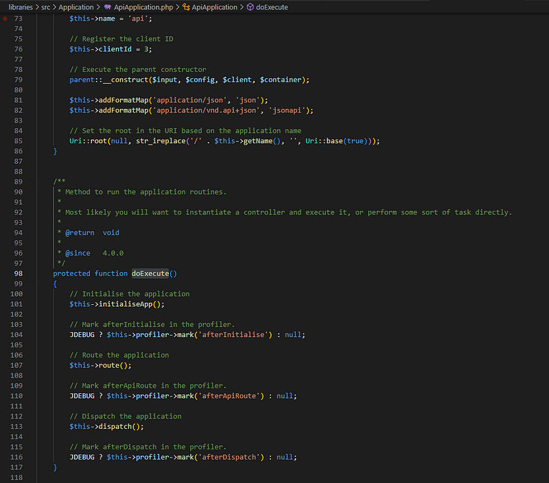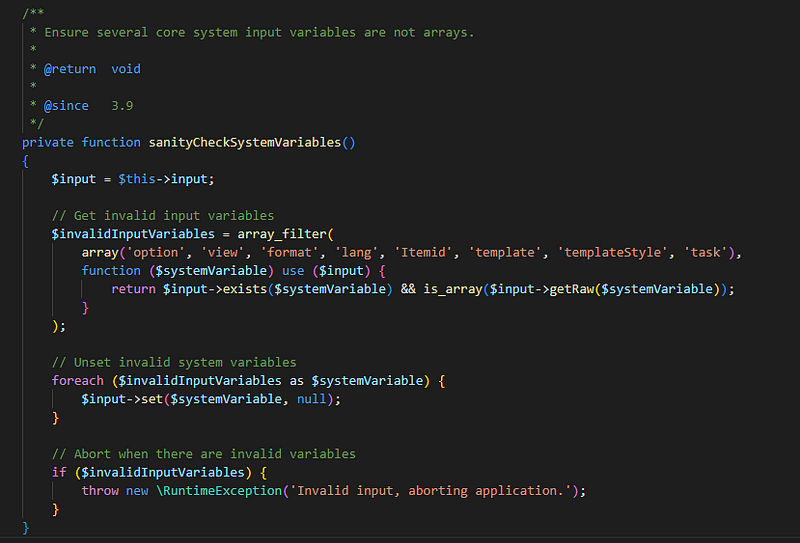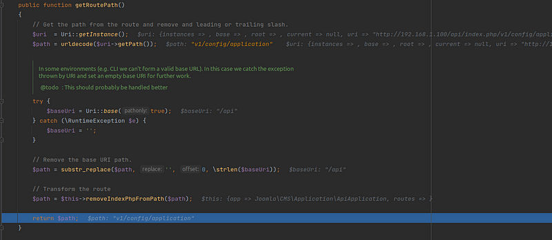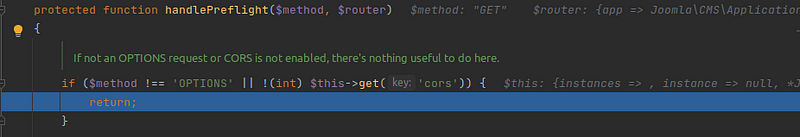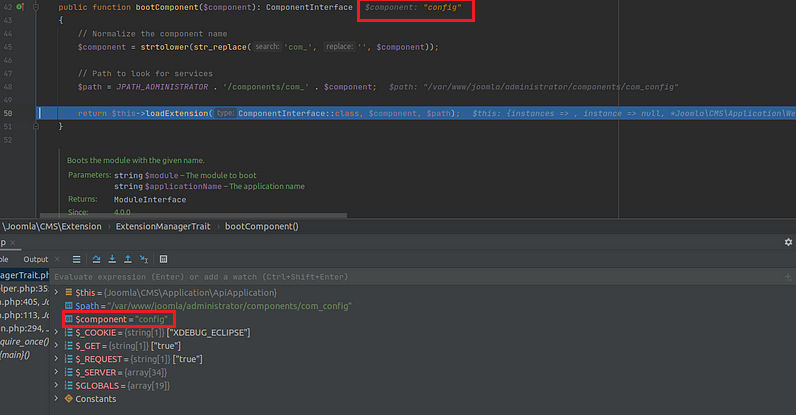 This was a really hard one to debug and analyze, and that’s because the way Joomla CMS is developed they break it into small components, methods ..etc, and basically they go through a lot of loops to break each request, take the input through some regex check, and also initiate all the needed components/variables for this request.
