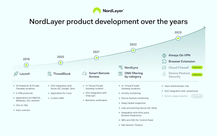 Every story has its humble beginnings, and so does NordLayer’s product. Let’s now take a look at our product’s gradual yet significant growth and where our remote network access solution stands now.