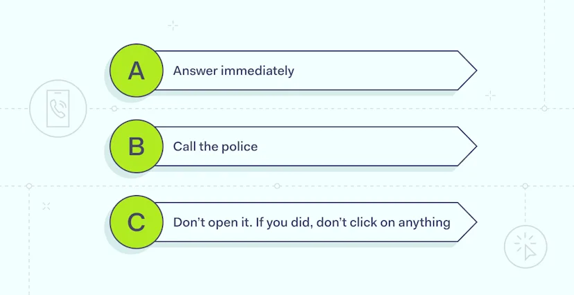 Correct answer: Don’t open it. If you did, don’t click on anything.