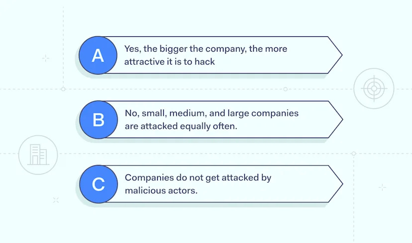 Correct answer: No, small, medium, and large companies are attacked equally often.