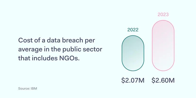 Meanwhile, the data breach costs are rising. According to the latest IBM Data Breach Report 2023, the public sector, which includes NGOs, sees growth in data breach costs: