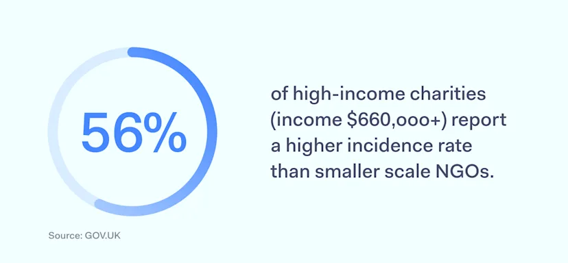 In the last 12 months, high-income NGOs have been a common target of cyber threats due to their higher-scale impact on the organization and benefit for bad actors. However, a lower frequency of attacks on smaller-scale organizations doesn’t mean they are less attractive to attackers.