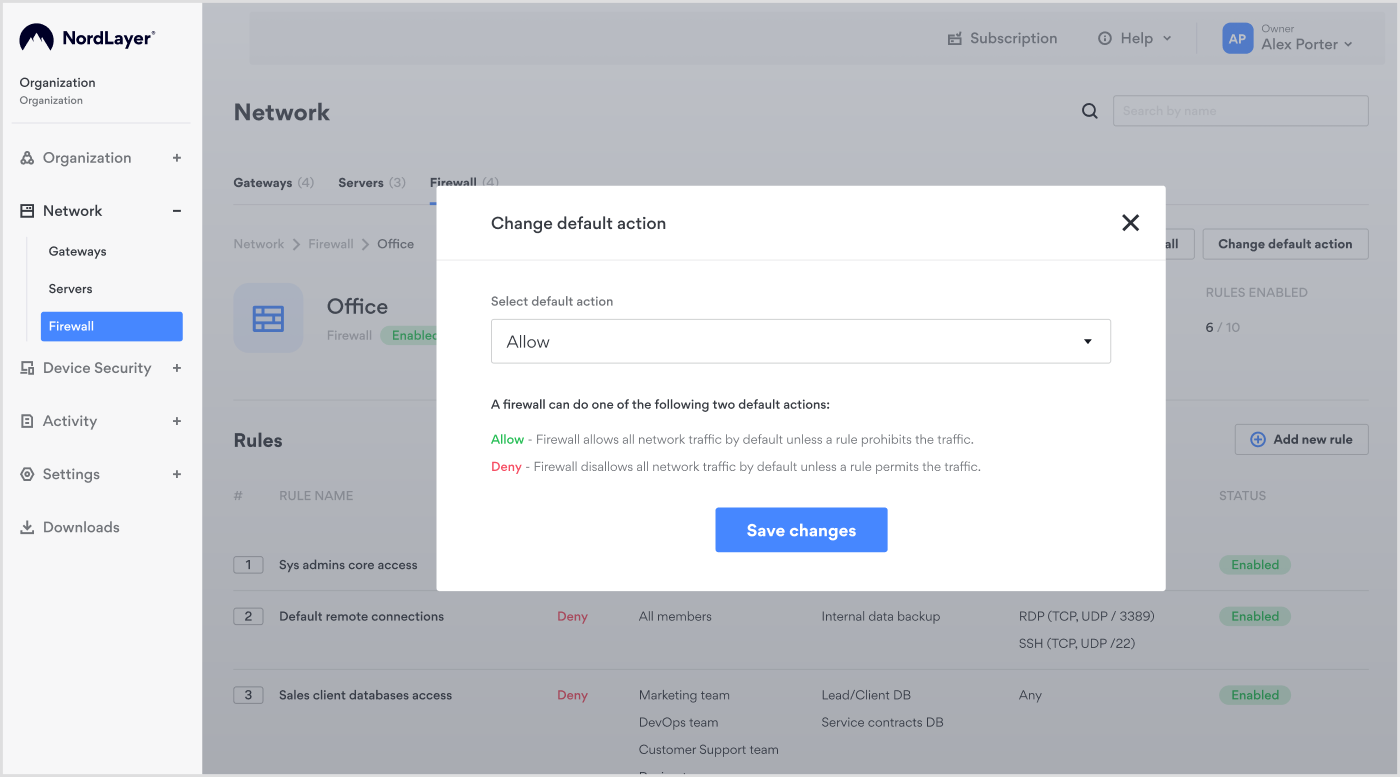 But the benefits of ACLs don’t stop there. By combining ACLs with our Cloud Firewall feature, you’re not just building walls—you’re creating an impenetrable fortress around your devices and network. With NordLayer, setting up and managing ACLs is a breeze, giving you peace of mind knowing your network is fortified against any threats that come its way.