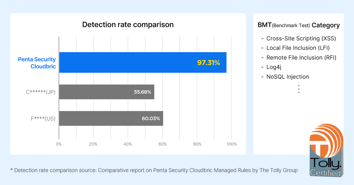 SEOUL, SOUTH KOREA, September 17, 2024 /EINPresswire.com/ — Penta Security, a leading cyber security company and provider of web application security in the Asia-Pacific region, announced that Penta Security’s latest Cloudbric Managed Rules, API Protection, showed outstanding performance in the comparative test audited by The Tolly Group.
