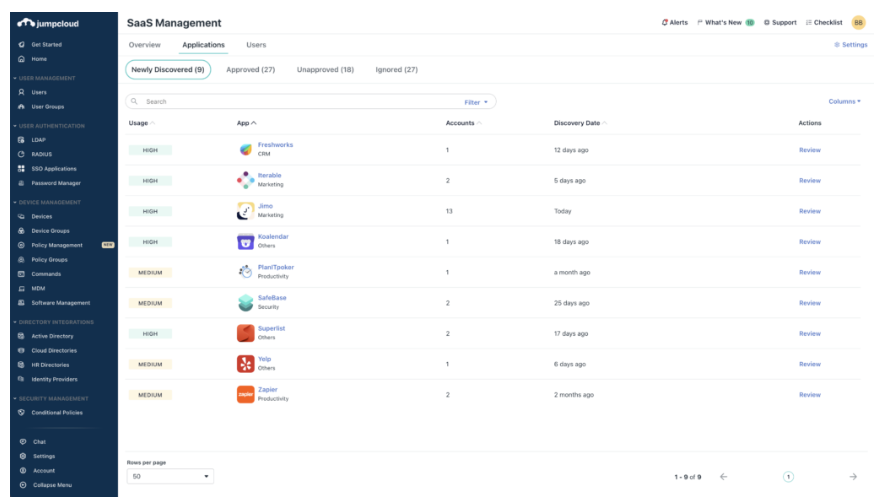 通過 JumpCloud 的 SaaS 探索和監控功能,您可以在安全性和生產力之間找到最佳平衡。