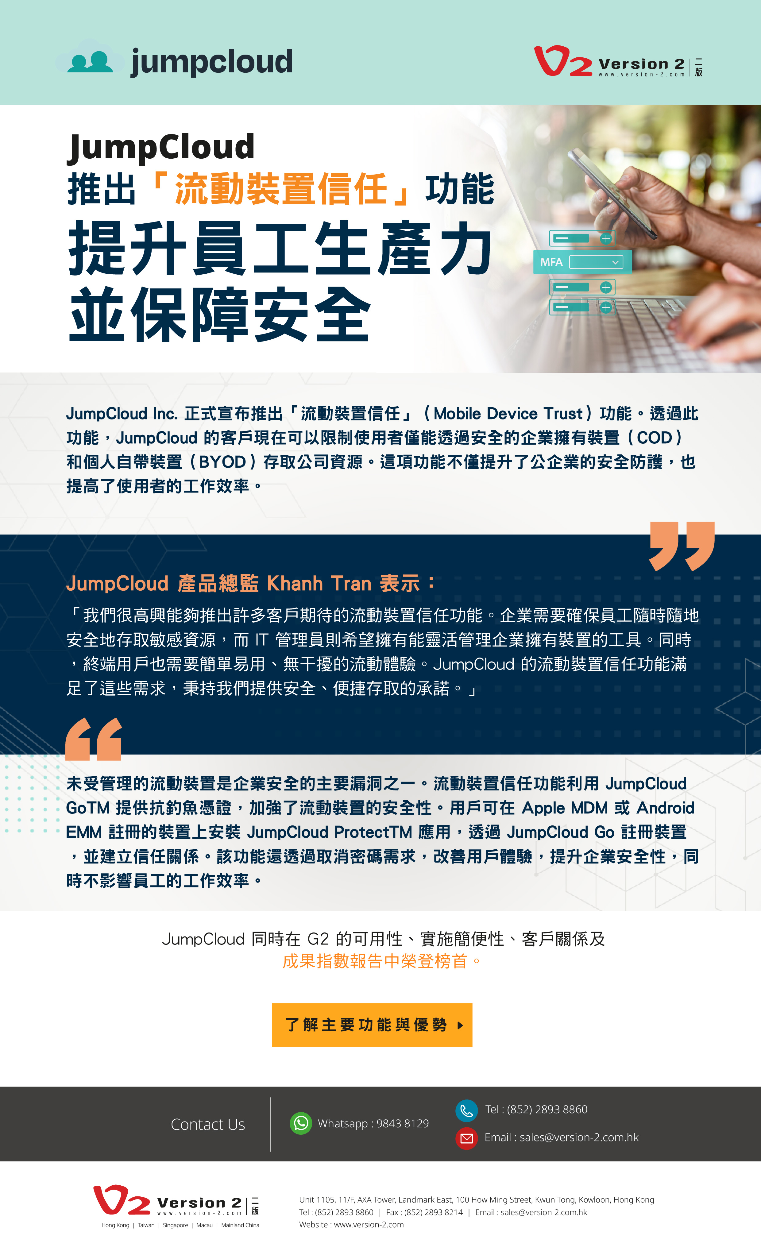 [Live Webinar] 通過 Catalogic DPX 提升資料安全性與靈活性PreviousJumpCloud 宣布推出全新的 SaaS 管理工具 助公司企業對抗揭露「影子 IT」(Shadow IT)NextJumpCloud 推出「流動裝置信任」功能 提升員工生產力並保障安全Posted on 2024-10-21In EDM edm