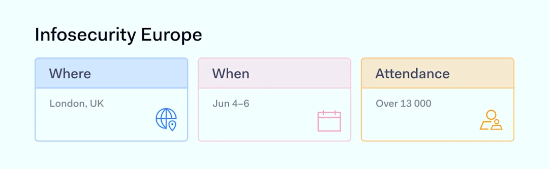 Infosecurity Europe in London gathers over 13k information security professionals, from engineers to innovators. It’s an essential event for staying informed about cybersecurity.