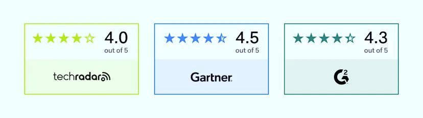 NordLayer is rated 4 out of 5 on TechRadar, 4.5 out of 5 on Gartner, which is the most authoritative source for technology reviews and insights, and 4.3 out of 5 on G2, a popular platform for user reviews and ratings of software products.