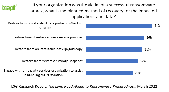 Instead, let me focus on one specific use case: backup and recovery of Office 365 data. Of course, that’s a huge part of what we do at Keepit, and our customers love it. So do analysts. We all know that disasters can strike at any time—ransomware, human errors, and technical failures can leave you in need of recovery at any time of the day or any day of the year. In the old-school world, starting a recovery meant “drive to the data center, put a tape in the tape library, and then run backup software.” With a cloud-native data protection solution like Keepit, there’s no more driving and no physical tapes, but you still have to start the restore.